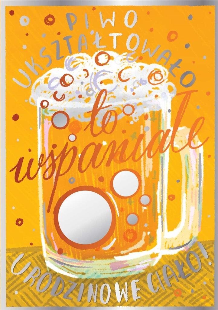 Kartka Dream Cards "Piwo ukształtowało to wspaniałe ciało" DK-1219 Kartka B6 z ozdobnej serii Dream Cards na urodziny z lusterkiem w środku - nieduża, ale robi wrażenie dzięki atrakcyjnej kolorystyce i ciekawym zdobieniom. To idealny wybór łączący przyjazną cenę z jakością. Cechy szczególne:...