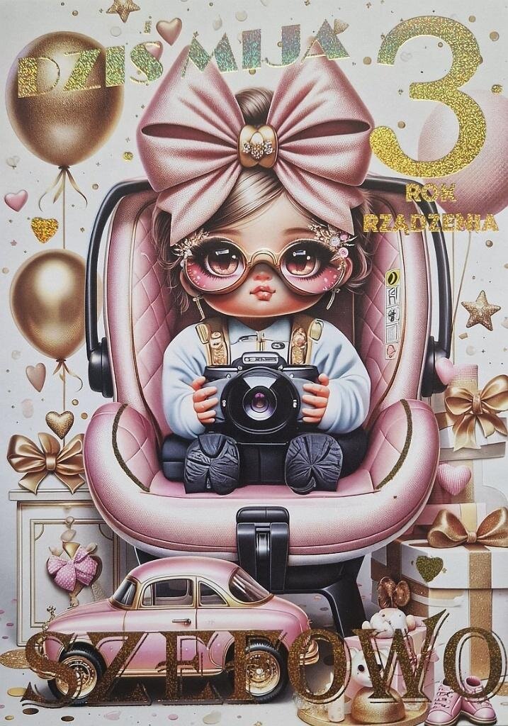 Karnet 3K to bogato zdobiony karnet z elementem naklejanym oraz złoceniem. Karnet to doskonały dodatek do prezentu. Karnet zawiera również zabawne życzenia. przeczytaj całość