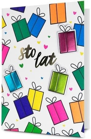 Kartka jest bogato i różnorodnie zdobiona.Kartka zawiera życzenia i kolorowy środek.W zestawie znajduje się koperta, kolorystycznie uzupełniająca się z kartką. przeczytaj całość