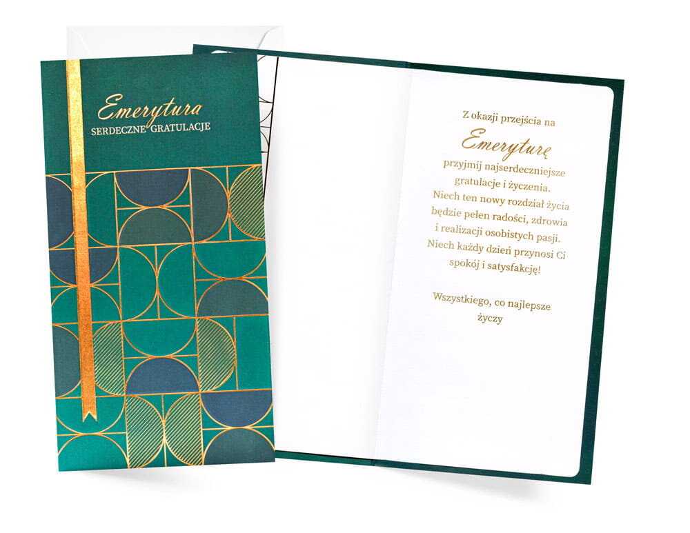 Kartka "Emerytura" z serii Passion Moments PM-412 Każda kartka w kolekcji Passion Moments to małe arcydzieło - wyjątkowe i niepowtarzalne, piękne wizualnie. Kartki PM są bardzo bogato zdobione, a jednocześnie skromne i stylowe, cały efekt tkwi w detalach i doskonałym wykonaniu. W zależności od...
