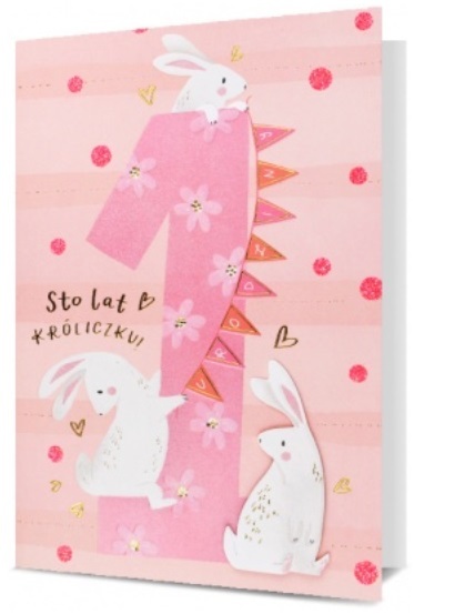 Karnet 1 urodziny, roczek - Sto lat Króliczku - różowy HM200-2142