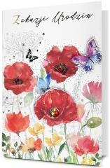 Kartka jest bogato i różnorodnie zdobiona (zależnie od wzoru: metaliczna folia, lakier perłowy,brokat, przyklejone elementy 3D - wypukłe wstawki papierowe, elementy biżuteryjne, tłoczenia).Kartka zawiera życzenia i kolorowy środek.W zestawie znajduje się koperta, kolorystycznie uzupełniająca się... przeczytaj całość