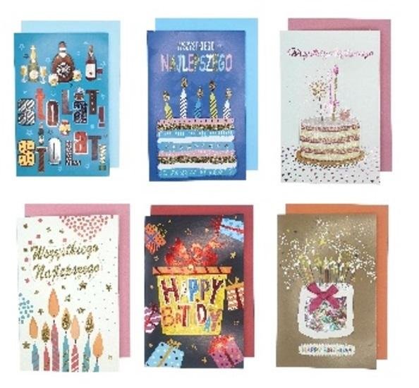 Miks wzorów, towar wysyłany losowo. Cena za sztukę.Kartka urodzinowa składana. Nadruk z brokatem, hot stamp i elementami 3D. Wymiary: 11,5 x 17 cm. przeczytaj całość