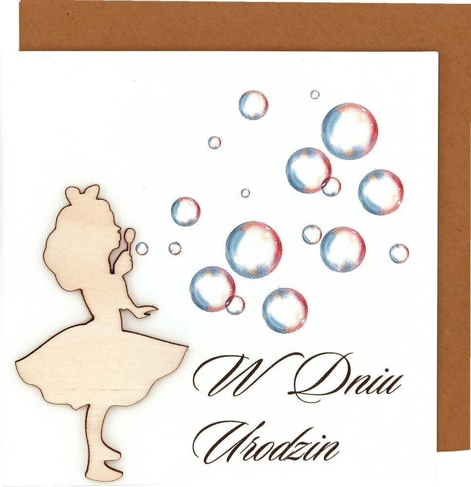 Kartka okolicznościowa z okazji urodzin o treści: Dla Ciebie wszystkie cuda tego świata. Dla Ciebie ciepło słonecznego lata. Dla Ciebie gwiazdki, co błyszczą na niebie. Dla Ciebie nutki w ptaszków śpiewie. Dla Ciebie kwiatki kolorowe. I marzenia deserowe? Dla Ciebie wszystko, czego zapragnie dusza, Bo jesteś słodkim aniołkiem, Który wciąż do radości zmusza! W Dniu Urodzin Tobie życzy?.