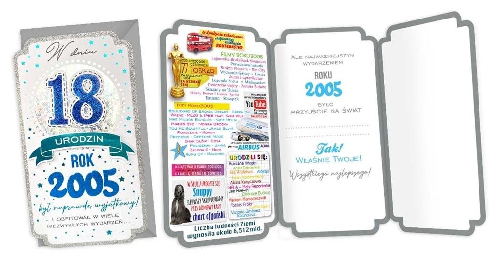 Kartki z serii Roczniki Passion Moments to zdobione kartki, w których w środku znajdują się ciekawe wydarzenia z danego roku. Na kartce znajdują się dekoracje ze złotej, srebrnej, perłowej lub holograficznej folii, a także doklejki biżuteryjne, kokardki, brokat, laserowe wycięcia, wstążeczki i... przeczytaj całość