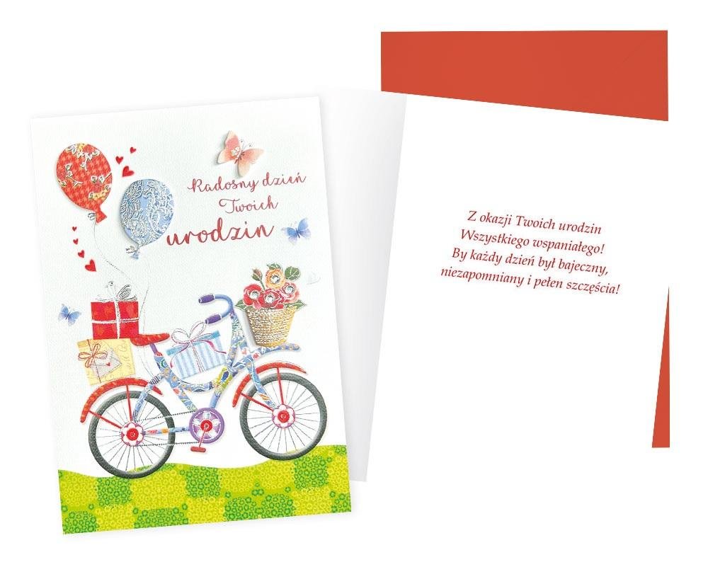 Kartka B6 z ozdobnej serii Dream Cards na urodziny - nieduża, ale robi wrażenie dzięki atrakcyjnej kolorystyce i ciekawym zdobieniom.To idealny wybór łączący przyjazną cenę z jakością.Cechy szczególne:wielkość: B6, 16.6 x 11.7 cm po złożeniu,koperta: w zestawie, kolorowa,zdobienia: kolorowe,...
