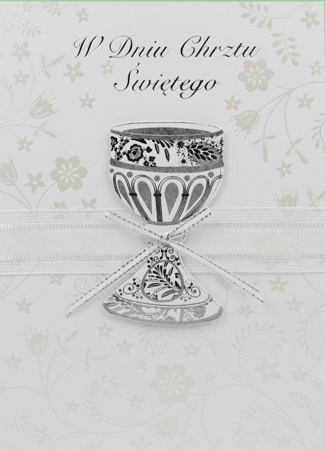 "Kartka okolicznościowa na Chrzest Święty SUPER LUX z życzeniami. USZLACHETNIENIA: w zależności od projektu graficznego pojawia się: folia (złota, srebrna, multikolor-holografik), elementy 3D, cekiny lub cyrkonie. Zrobione metodą hotstampinku. (metalik) Do każdej kartki dołączona jest koperta 100 gsm w pasującym do projektu kolorze. Całość zabezpieczona jest folią."