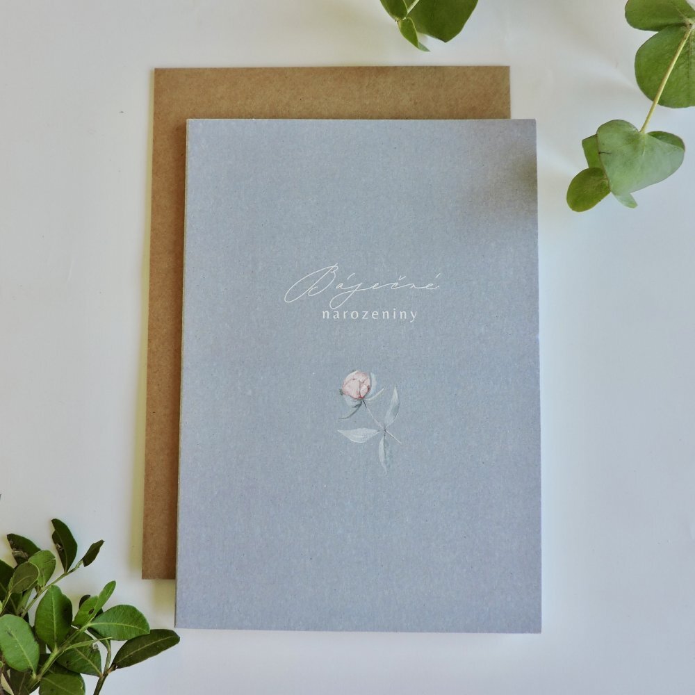 Be Nice přání - Eukalyptus s pivoňkou Báječné narozeniny
