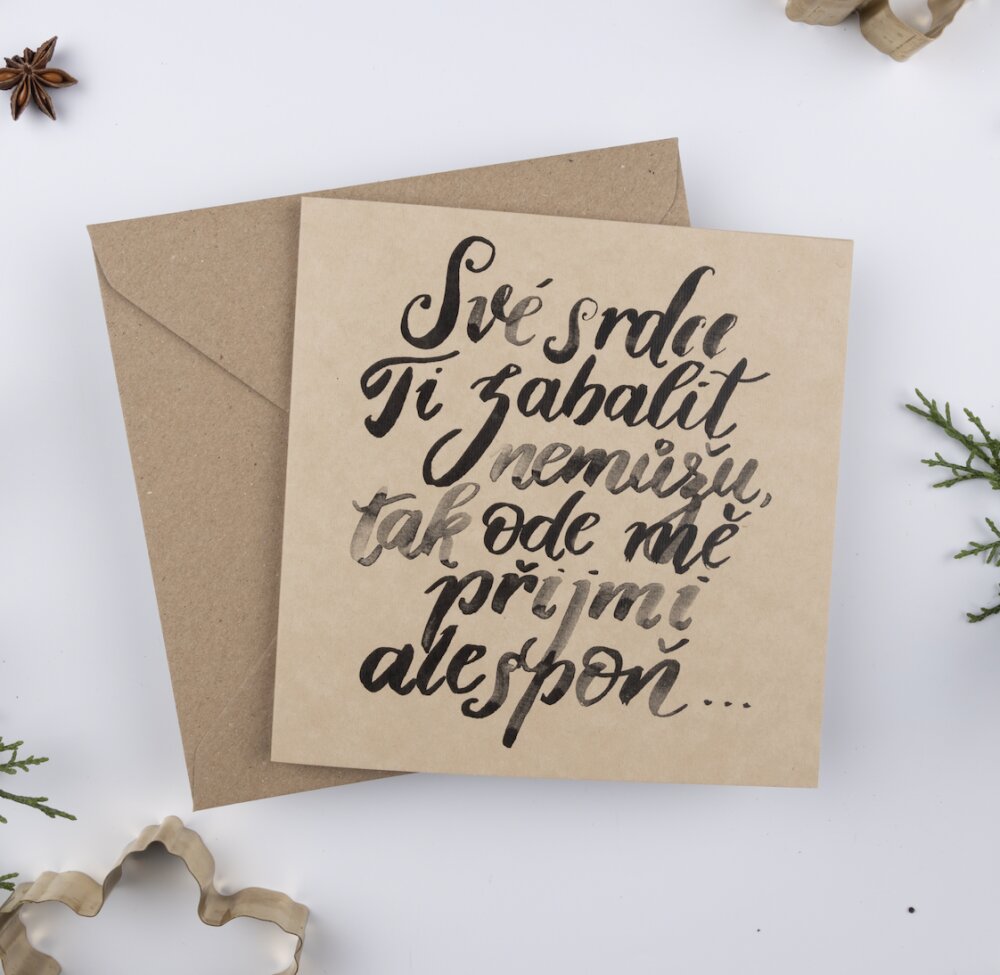 Přání krasopisně nadepsala česká výtvarnice Bára z Nikolajky.