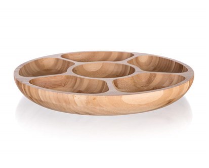 Ta dzielona miska z naturalnego bambusa wyróżnia się zarówno designem, jak i funkcjonalnością. Dzięki sprytnemu podziałowi możesz łatwo serwować różne rodzaje przekąsek jednocześnie, bez mieszania smaków. Materiał bambusowy wygląda naturalnie i nadaje serwowaniu rustykalny, a jednocześnie nowoczesny charakter. Miska jest kompaktowa, o wymiarach 31,5 x 4 cm, więc zmieści się na każdym stole, a jednocześnie oferuje wystarczająco miejsca na twoje ulubione smakołyki.
