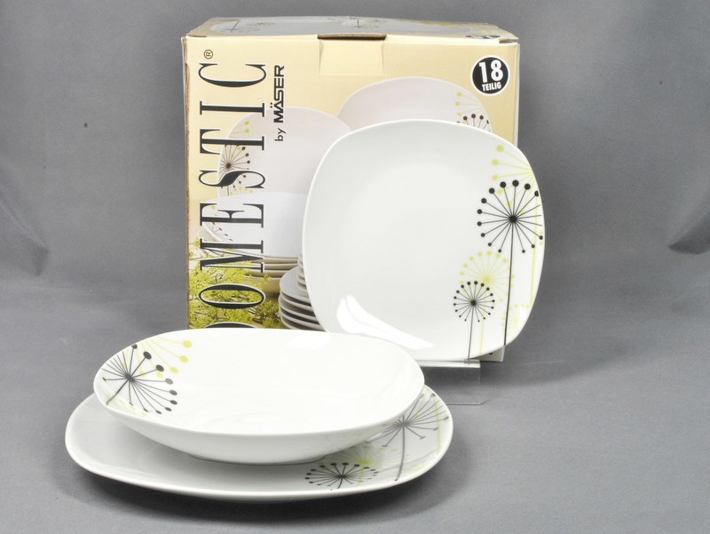 jídelní souprava VANESA s dekorem sada 18 dílů, rozměr mělký talíř 25 x 25 cm, hluboký talíř 21,5 x 21,5 cm, dezertní talíř 18,5 x 18,5 cm EAN 9001794458054 przeczytaj całość